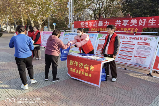 根据周口市委网信办工作安排,11月24日,项城市委网信办联合市公安局、市妇联、市科协在人民公园南广场开展了“网络防诈”宣传月主题宣传活动,现场摆放宣传展板6块,悬挂宣传标语4幅,设立宣传咨询展台4个,发放宣传资料、宣传品2800余份,接受群众咨询560余人次,宣传普及网络防诈常识,守护人民财产安全。